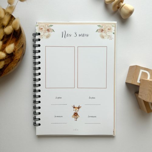 À chaque nouvelle page, vous pourrez inscrire leurs premiers exploits, leurs courbes de croissance respectives, leur arbre généalogique ainsi que quelques petites photos.
