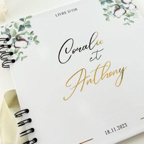 Vous vous mariez bientôt, et vous recherchez un livre d’or élégant ? Voici une création en dorure pour votre mariage. Laissez vos invités y écrire un mot, ou y glisser une photo. Ce livre d’or sera un magnifique souvenir de cette journée.