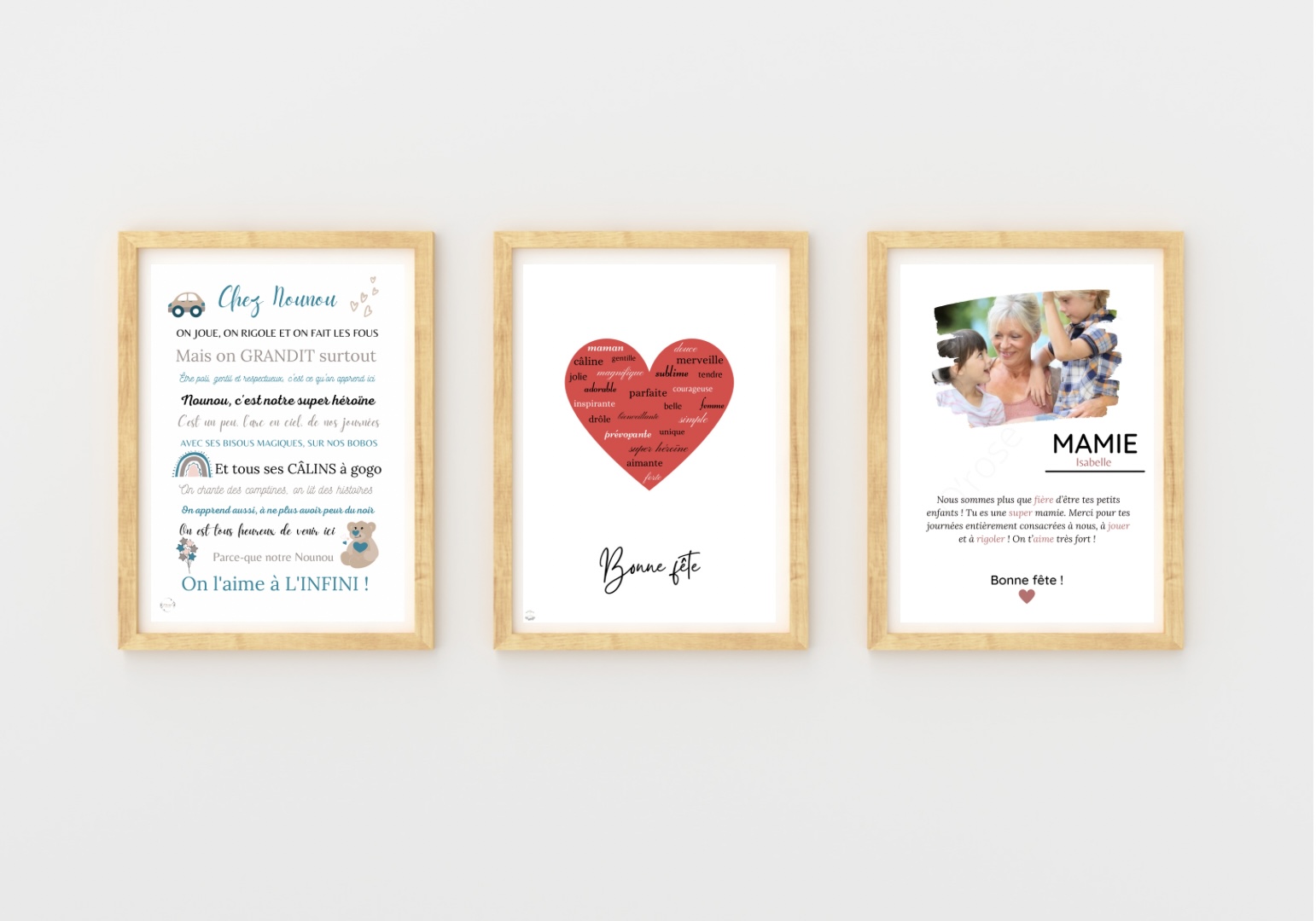 Fêtes des mères, des pères, des grands-mères et des grands-pères, vous trouverez ici de magnifiques affiches à personnaliser et à leur offrir !